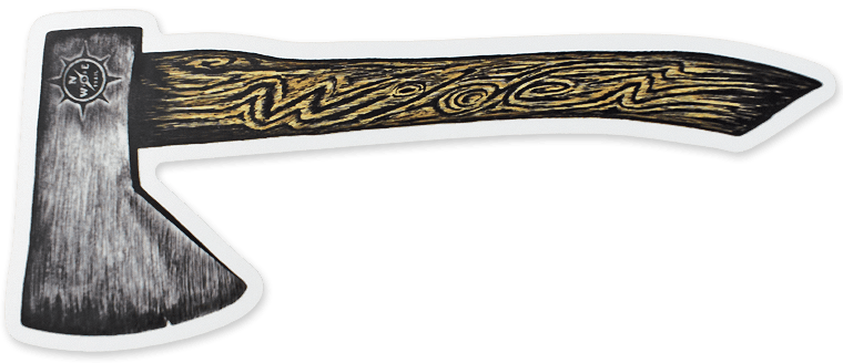 Ratchet up your outdoor game with our signature hatchet sticker.